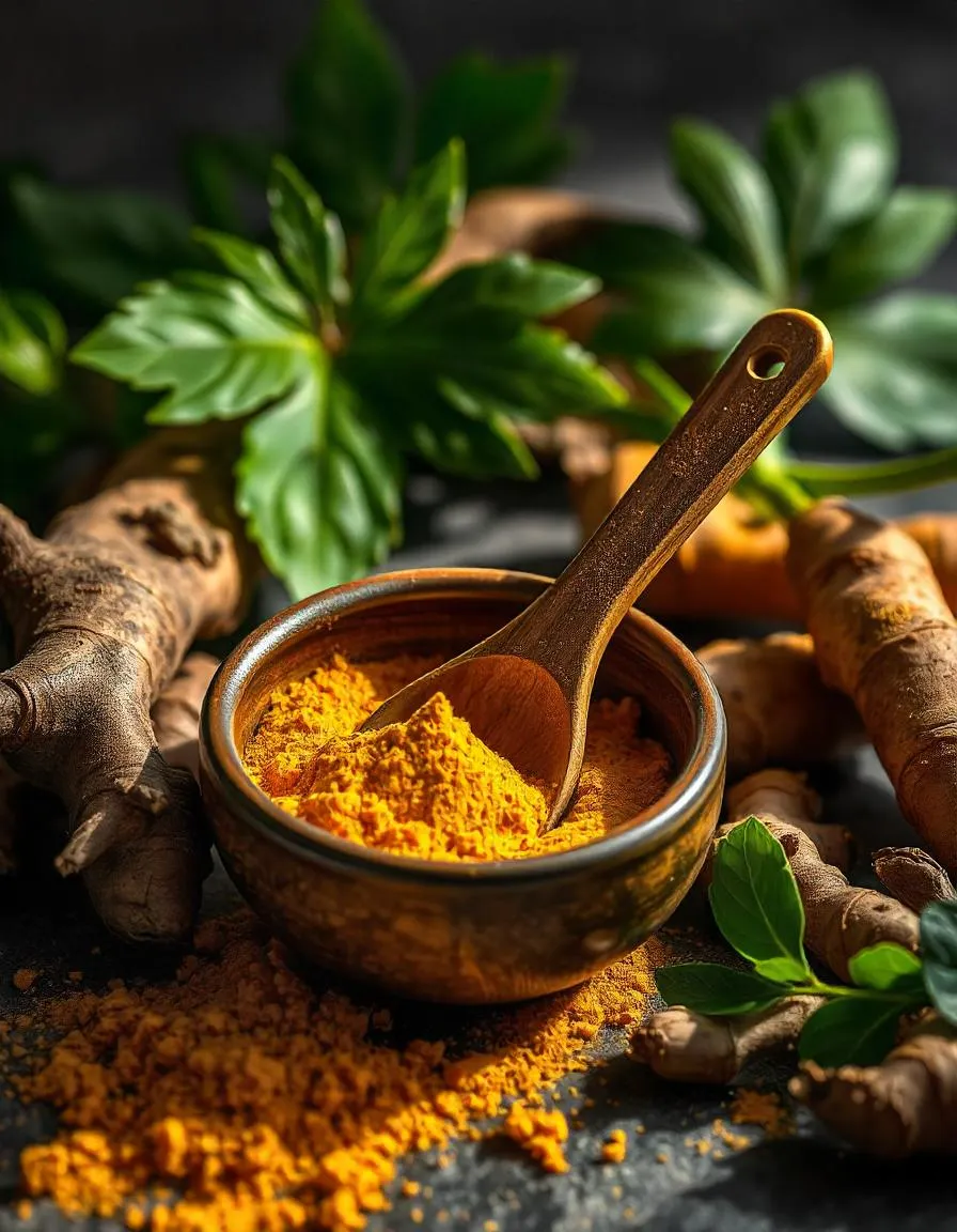 Rich, organic turmeric with vivid color and potent health benefits, available in both raw and powdered forms.